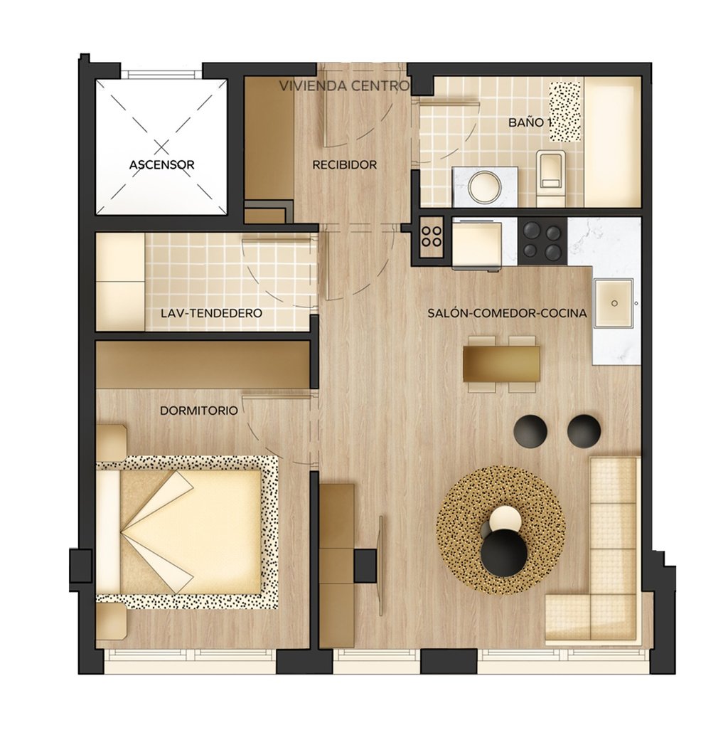 Bonitos apartamentos de un dormitorio. Cuentan con una lavandería independiente, un baño y un amplio salón-cocina totalmente amueblado. Ideal como primera vivienda o inversión.